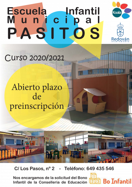 La Concejalía de Educación del Ayuntamiento de Redován comunica la apertura del periodo de realización de la prematrícula de la Escuela Infantil Municipal «Pasitos» para el próximo curso 2020/2021.