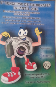 - Las fotos serán realizadas en una cámara desechable que recogerán en la Concejalía de Educación del Ayuntamiento en el momento de hacer la inscripción. Al hacer la inscripción abonarán 5 euros que les serán devueltos al entregar la cámara.