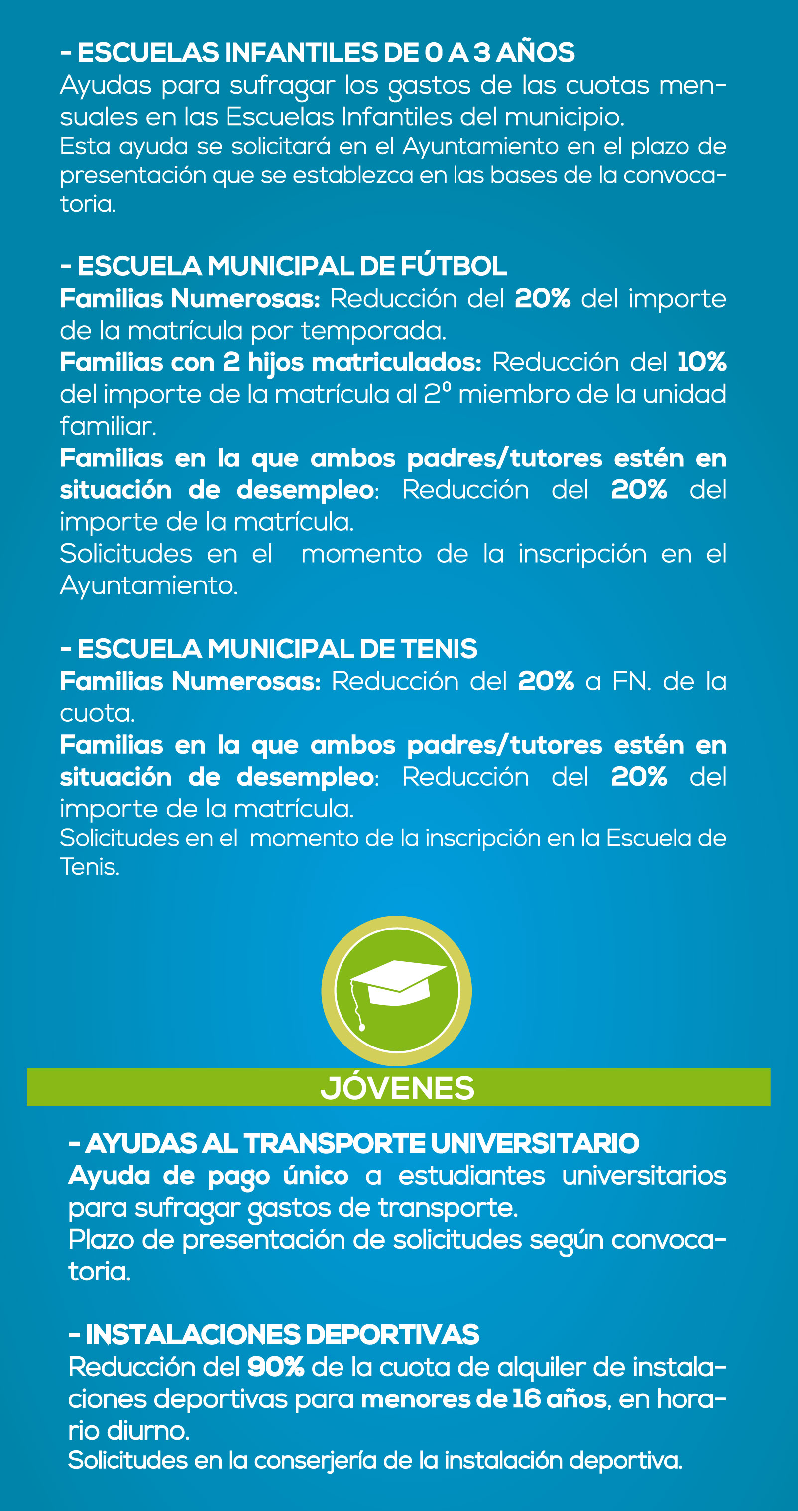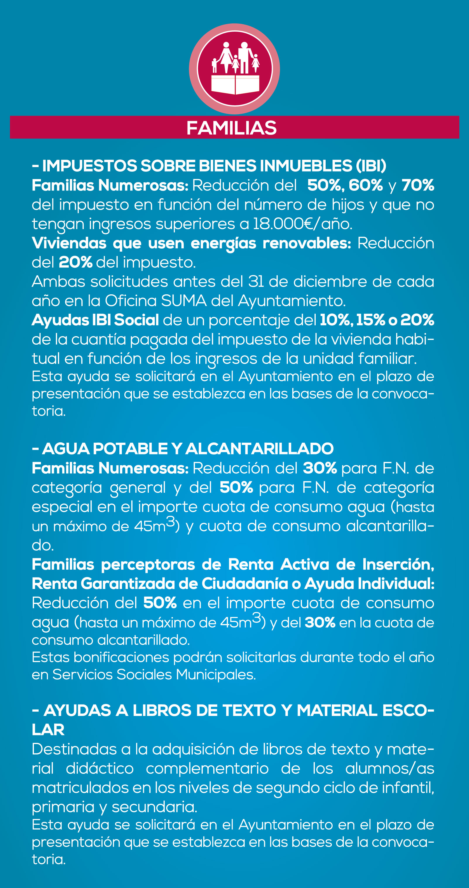 Estas son las bonificaciones y ayudas municipales previstas para familias, jóvenes, personas discapacitadas, jubilados y pensionistas en Redován para este año y el próximo. Consúltalas porque quizá te puedan interesar.