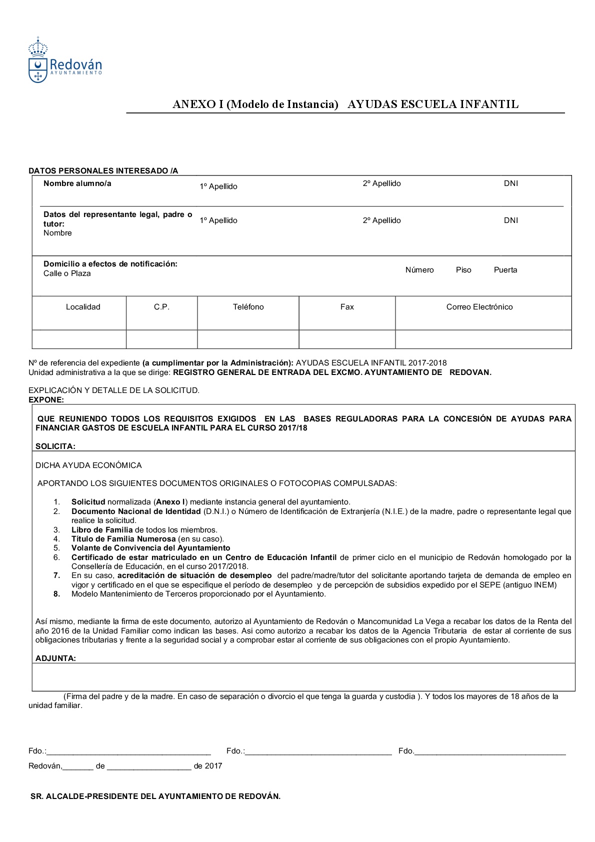 Las bases y el modelo de solicitud se encuentran, a disposición de todos los vecinos y vecinas de Redován, en los Servicios Sociales, Ayuntamiento y en la sede electrónica/portal de transparencia del Ayuntamiento en la página www.redovan.es.