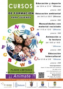 Para los próximos meses, la Mancomunidad la Vega oferta seis cursos de formación permanente para jóvenes en los siguientes temas: educación y deporte, educación ambiental, manualidades con material reciclado, animación a la lectura y educación intercultural. Es una formación acreditada, complementaria y especializada, que les servirá para complementar su curriculum y poder acceder a trabajos relacionados con cada uno de ellos, en escuelas de verano, campamentos, ludotecas, ocio joven, etc…