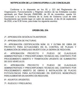 El viernes 16 de septiembre el Ayuntamiento de Redován acoge una reunión de la Junta de Gobierno Local. Estos son los puntos del orden del día: