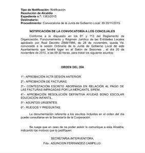 El Ayuntamiento de Redován celebra el viernes 20 de noviembre de 2015 una nueva reunión de la Junta de Gobierno Local. Este es el orden del día: