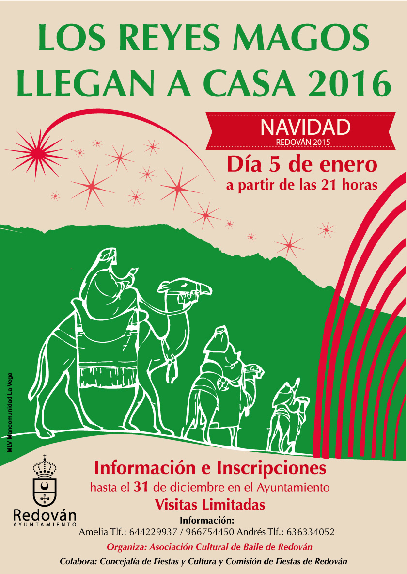 Aunque parezca increíble, los Reyes Magos pueden llegar hasta tu casa y entregarles los regalos que han pedido -o los que se merecen por portarse muy bien- los más pequeños. Si quieres que sus Majestades lleguen hasta tu hogar, inscríbete en el Ayuntamiento de Redován hasta el 31 de diciembre y tus hijos vivirán una experiencia inolvidable el 5 de enero, después de la Cabalgata cuando los Reyes, acompañados por una corte de personajes Disney vayan a repartirles los regalos. La llegada está prevista a partir de las 21 horas de la noche porque Melchor, Gaspar y Baltasar tienen mucho trabajo. Las visitas que pueden hacer son limitadas así que no te lo pienses mucho. Eso sí, estos niños y niñas ¡han de portarse fenomenal! Organiza Asociación Cultural de Baile de Redován. Colabora la Concejalía de Fiestas y Cultura y la Comisión de Fiestas de Redován.