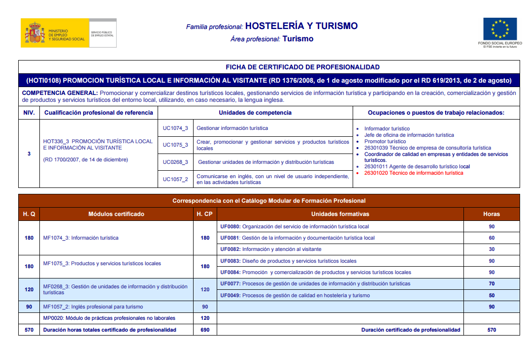 El objetivo del curso es promocionar y comercializar destinos turísticos locales, gestionando servicios de información turística y participando en la creación, comercialización y gestión de productos y servicios turísticos del entorno local, utilizando, en caso necesario, la lengua inglesa.