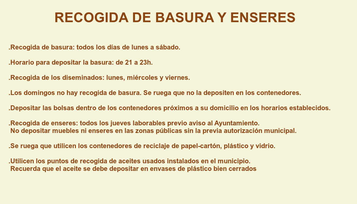 Desde la Concejalía de Servicios Municipales de Redován se recuerda algunos consejos sobre la recogida de basura y enseres para tener un municipio más limpio.