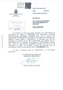 Aprueban una subvención al 100% que la Diputación de Alicante ha concedido al Ayuntamiento de Redován para ejecutar el Proyecto denominado «REURBANIZACIÓN DE ACERAS EN LAS CALLES PINTOR SOROLLA, FRANCISCO PEÑALVE, BLASCO IBÁÑEZ Y ADYACENTES». Esta actuación cuenta con un presupuesto de 120.000 euros.