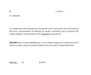 Declaración responsable de no recibir otra subvención