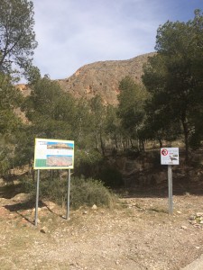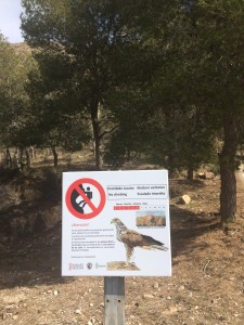 También se especifica en otro cartel las zonas de escalda donde está prohibido realizar este deporte en una determinada fecha. Debido a que en esas paredes nidifica una pareja de águilas.