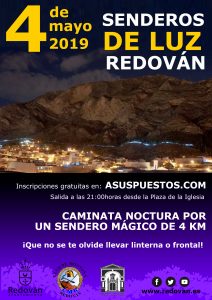 La concejalía de Deportes ,Cultura y fiestas organizan SENDEROS DE LUZ conmemorando la fiesta de la CRUZ , tanto del barrio del Rincón como las de la Plaza de la CRUZ , el sendero tiene un recorrido de 3’7 kilómetros y es obligatorio llevar linterna o frontal. Todos los participantes deben de inscribirse en