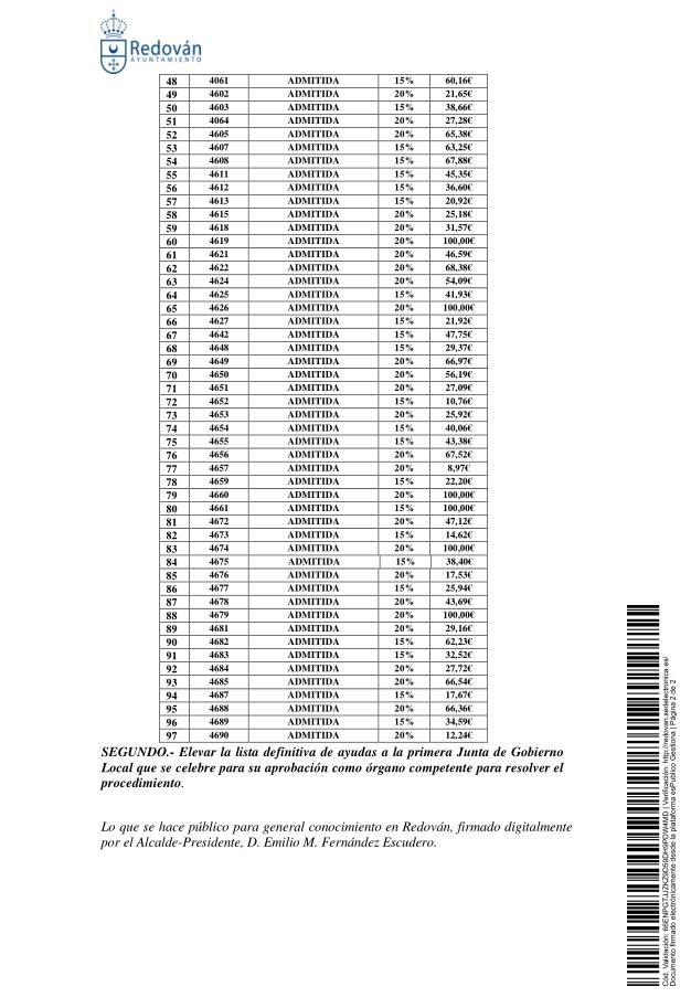 Lo que se hace público para general conocimiento en Redován, firmado digitalmente por el Alcalde-Presidente, D. Emilio M. Fernández Escudero.