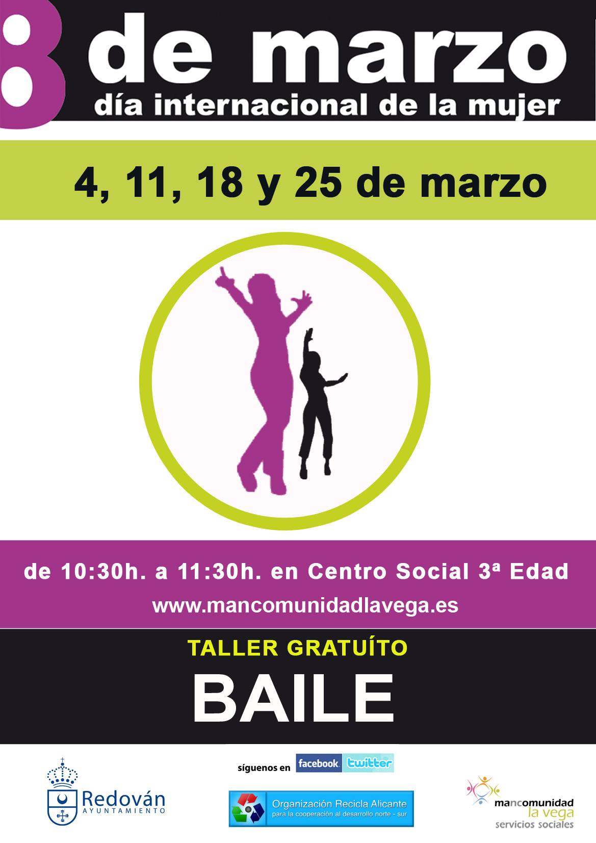 as personas interesadas debéis acudir directamente al centro social a la hora de inicio del taller. Esta actividad forma parte de la programación del 8 de marzo y se lleva a cabo con el apoyo de la Mancomunidad la Vega y la Asociación Recicla